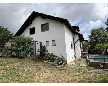 Zum Haus gehört ein Gartengrundstück mit Terrasse, überdachter Freisitz, ein Swimmingpool eine große Doppelgarage, Carport, Fertiggarage sowie Stellplätze.