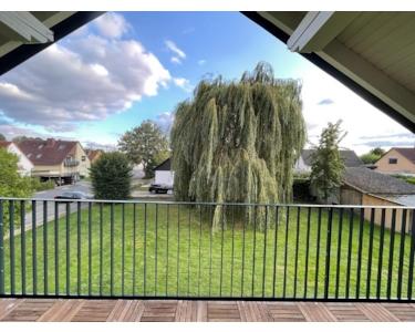 - Großer Balkon mit Blick in den Garten. Neues Geländer und Aussenanstrich.