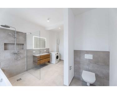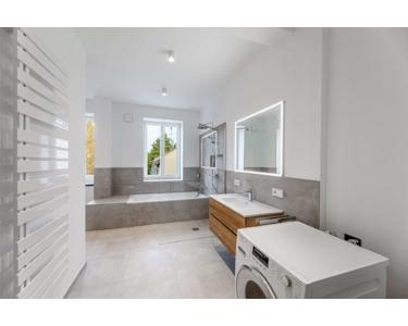 - Badezimmer mit Badewanne und bodengleicher Dusche