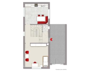 Das Erdgeschoss bietet eine Küche, Gäste-WC und ein Schlafzimmer, sodass hier innerfamiliär die Immobilie auch als Generationenanwesen genutzt werden kann.