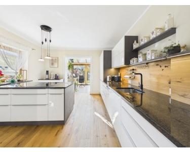Das Haus umfasst zwei Wohngeschosse, die beide mit viel Liebe und hoher handwerklicher Qualität modernisiert wurden. Das Erdgeschoss wurde dabei barrierefrei gestaltet und 2022 umfassend erneuert. Eine hochwertige Einbauküche mit Steinarbeitsplatte, neue Bodenbeläge sowie ein modern ausgestattetes Badezimmer verleihen dieser Ebene ein zeitloses Wohngefühl. Die Wohnräume im Obergeschoss wurden ebenfalls aufwendig saniert und mit neuen VELUX-Dachfenstern versehen, wodurch sich eine helle, freundliche Atmosphäre entfaltet.
