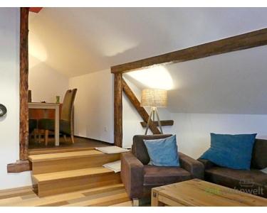 ### Please note the availability date! Bitte das Verfügbarkeitsdatum beachten! ### Es gibt Wohnungen die man nicht fotografieren kann! geniales Dachgeschoss-Apartment in DD-Briesnitz in einer edel sanierten Stadtrandvilla, nur ca. 200 Meter vom Elbe-Radweg entfernt; Wohnen auf mehreren Ebenen! großes Wohnzimmer mit verschiedenfarbigen Echtholz-Parkettboden; großes Sofa mit TV, über 2 Stufen geht es in einen kleinen Arbeits- und Essbereich; moderne Küche im Eingangsbereich; Schlafzimmer mit Doppelbett im 8-eckigen Turmzimmer mit Blick über das Elbtal; modernes Bad mit Dusche und WC, keine Waschmaschine; WLAN und Sky-TV inklusive; Pauschalmiete 810,00 Euro bei 1 Person (bei Bedarf ist USt ausweisbar!); wird an max. 2 Personen vermietet; Kaution 1.500,00 Euro; Endreinigung Mietersache; Mindestmietdauer 3 Monate; Pflichtangaben zum Energieausweis: Energieausweis gültig bis: 30.08.2029; Baujahr Gebäude: 1845; Energieausweis: nach Bedarf; Energieverbrauch: 186.95 kWh/(m²a); Energieeffizienzklasse: F; Primärer Energieträger: Erdgas, Stückholz
