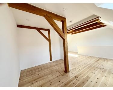Diese 4-Zimmer-Maisonettewohnung in der Altstadt von Bad Belzig erstreckt sich über das 1. Obergeschoss und das Dachgeschoss eines Mehrfamilienhauses und bietet auf ca. 82 m² eine klare und gut nutzbare Raumaufteilung. Die Wohnung wurde 2024 umfassend renoviert. Echtholzdielen, helle Räume und der Zugang zu einer eigenen Terrasse im Innenhof schaffen ein gepflegtes, wohnliches Gesamtbild.