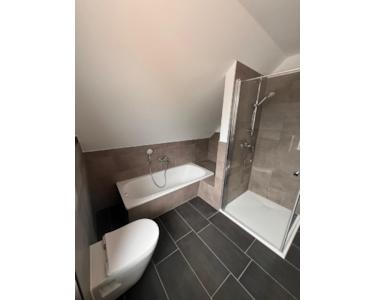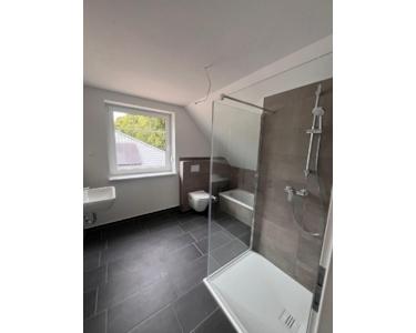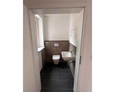 Die Sanitärausstattung im EG-Gäste-WC und dem Vollbad im OG mit Wanne, Dusche 90*90 mit ESG-Verglasung, sowie die hochwertigen Sanitärausstattung und der Waschmaschinenanschluss im HWR Raum runden den sehr hohen Ausstattungsgrad jeder Wohnung ab.