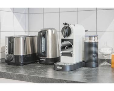 - Moderne Einbauküche mit Induktionskochfeld, Backofen, Dunstabzug, Spülmaschine, Kühl-Gefrier-Kombi, Nespresso-Maschine, SodaStream sowie komplettem Koch- und Essgeschirr