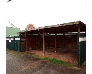 Carport und Nebengebäude für Auto, Werkstatt oder Stauraum.