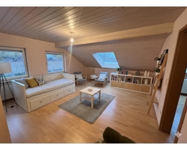 Das Dachgeschoss verfügt über eine vollständig ausgestattete, bislang nie genutzte Einliegerwohnung mit zwei Zimmern, Küche und Bad – ideal als Gästebereich, Rückzugsort für ältere Kinder oder als Wohnraum für Großeltern, die im Haus mitleben möchten. Der Keller bietet neben ausreichend Lagerfläche auch einen Hobbyraum für Freizeitaktivitäten oder Fitness.
