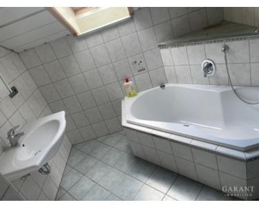 * Badezimmer mit Badewanne, Dusche und Fenster