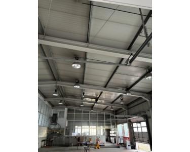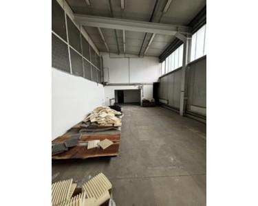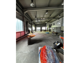 Hinteres Gebäude: Stahlträgerkonstruktion ( Hochwertig ) Hoesch ISOWAND und ISODECKE, Starkstrom, 3 x Sektionaltore uvm.