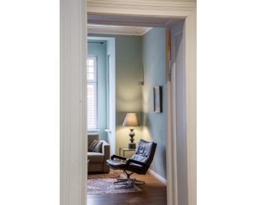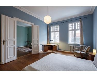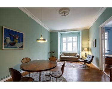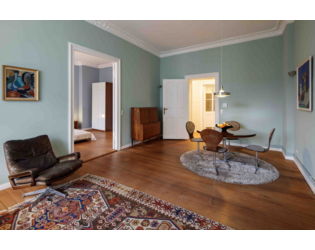 Diese perfekt geschnittene Vorderhaus-Wohnung mit Erker im 3. Stock eines Jahrhundertwende-Altbaus verfügt über viele ursprüngliche oder aufgearbeitete originale Details wie Stuckornamente, Holztüren mit Messingbeschlägen, abgezogene Holzdielen und Holzrahmen Fenster mit Isolierverglasung. Ein ausgeklügeltes Farbkonzept bringt die 3,38 m hohen Stuck-Decken besonders zu Geltung und erzeugt ein grosszügiges und edles Raumgefühl.