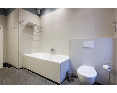 A high-quality fitted kitchen with induction hob and dishwasher, as well as a large, modern bathroom with walk-in shower, bathtub, and toilet, leave nothing to be desired in terms of technology and design.