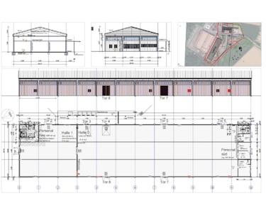 •Gesamtfläche: ca. 1.773 m² (davon Lagerhalle 1.640 m2 Sozialtrakt 90 m2, Erweiterung optional 43 m2)