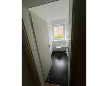Diese ansprechende 4-Zimmer-Wohnung befindet sich im Erdgeschoss eines gepflegten Wohnhauses und überzeugt durch eine durchdachte Raumaufteilung, bei der sämtliche Zimmer bequem vom zentralen Flur aus erreichbar sind. In den Wohn- und Schlafbereichen wurde ein neuer Laminatboden verlegt, während Küche, Badezimmer und Gästetoilette mit modernen schwarzen Bodenfliesen ausgestattet sind, die dem Gesamtbild eine elegante und zeitgemäße Note verleihen.