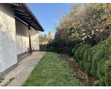 Dieser Bungalow aus ca. 1980 befindet sich in einer beliebten, ruhigen Wohnlage von Bad Marienberg. Mit rund 118 m² Wohnfläche eignet er sich ideal für Paare, Senioren oder kleine Familien. Der helle Wohn- /Essbereich mit großer Fensterfront öffnet sich zur überdachten Süd-West-Terrasse und in den pflegeleichten Garten – perfekt für alle, die wenig Aufwand wünschen und dennoch Wert auf eine grüne Außenfläche legen. Neben einem geräumigen Schlafzimmer stehen zwei weitere Zimmer zur Verfügung, nutzbar als Kinder-, Gästezimmer oder Büro. Zwei Tageslichtbäder sorgen für Komfort. Direkt an die Küche schließt sich ein HWR mit Gastherme an, der sich gut für Vorräte oder Haushaltsgeräte eignet. Die Garage ist über einen Nebenflur mit dem Haus verbunden – ideal, um Einkäufe bequem ins Innere zu bringen. Dieser Flur bietet zudem Platz für Schuhe oder Alltagsgegenstände und verfügt über einen Waschmaschinenanschluss. Zusätzlich zur Hauptterrasse steht eine weitere, südöstlich ausgerichtete Terrasse bereit, ergänzt durch einen kleinen gepflasterten Sitzplatz. Der Dachboden, der sich über die gesamte Hausfläche erstreckt, bietet reichlich Stauraum. Die Lage verbindet Ruhe mit Zentrumsnähe: Einkaufsmöglichkeiten, Cafés uvm. sind in wenigen Gehminuten oder mit dem Ato erreichbar!