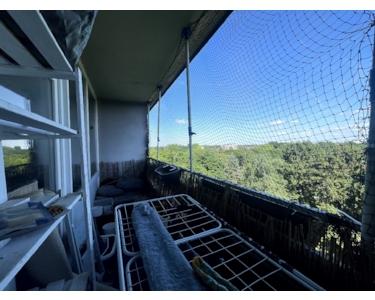 Die Wände der Wohnung sind weiß gestrichen. Im Wohn- und Schlafzimmer wurde ein dunkelbrauner Laminatboden verlegt, während in dir Küche mit Fliesen ausgestattet ist. Das Badezimmer verfügt über beige Bodenfliesen und einen weißen Fliesenspiegel.