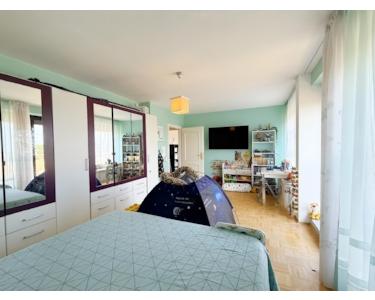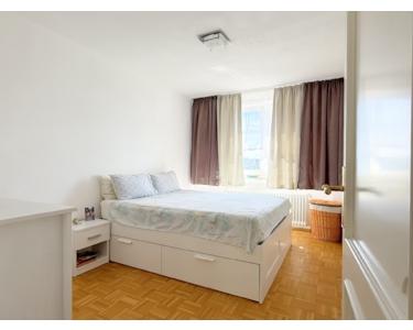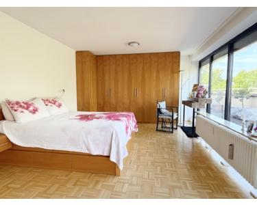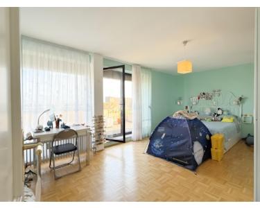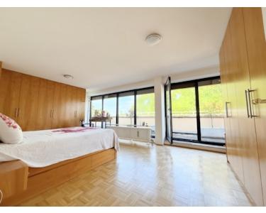 Das Vollbad sowie die vier Schlafzimmer befinden sich in dem vom Wohnraum abgewandten Bereich, auf der rechten Seite der Wohnung. Drei der Zimmer haben einen direkten Zugang zum Balkon und bieten einen schönen Blick in die Baumkronen.