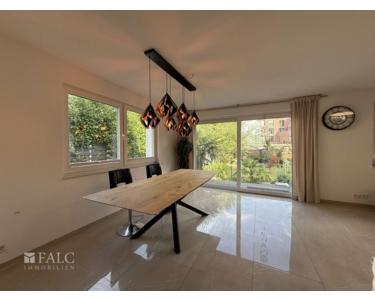 Bereits beim Betreten des Hauses empfängt Sie ein einladender und großzügiger Eingangsbereich, der einen ersten Eindruck vom stilvollen und gepflegten Ambiente des Hauses vermittelt. Das helle Wohnzimmer, das im Jahr 2022 durch einen Anbau erweitert wurde, besticht durch seine großen Fensterflächen, die nicht nur für ein angenehmes Tageslicht sorgen, sondern auch einen wunderschönen Blick in den liebevoll angelegten Garten ermöglichen. Hier lässt es sich entspannen, genießen oder gemeinsam mit der Familie Zeit verbringen.