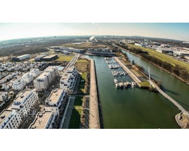 Willkommen in der Marina Graf Bismarck - Werden Sie Teil eines modernen Stadtquartiers unter dem Motto: Leben und Arbeiten zwischen Wasser und Wald.