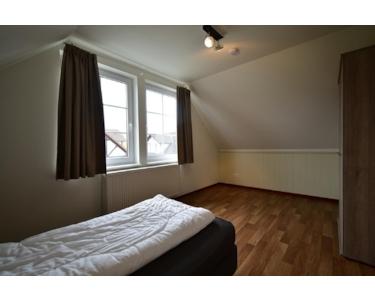 Schlafzimmer 3 verfügt ebenfalls über ein Einzel-Boxspringbett und grenzt an einen Balkon, der über große Terrassentüren erreichbar ist. Dadurch wirkt der Raum hell und großzügig. Der Balkon bietet Blick auf die umliegenden Ferienhäuser und das Grün der Anlage. Dieses Zimmer ist ideal für Gäste, die gerne einen eigenen Außenbereich am Schlafzimmer haben.