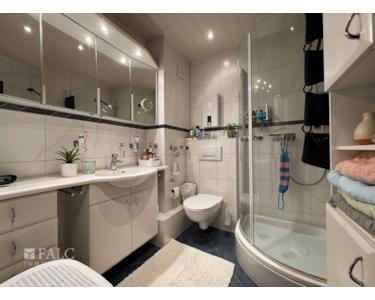 Im Badezimmer wurden strapazierfähige Fliesen gewählt, die eine einfache Reinigung und hygienische Pflege ermöglichen. Beheizt wird die Wohnung über ein energieeffizientes Gasheizungssystem, das für niedrige Betriebskosten und zuverlässige Wärme sorgt.