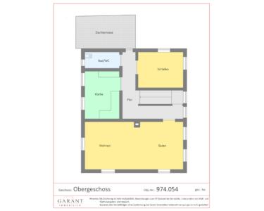 OG: Flur, Wohn- und Esszimmer, Küche, Bad,