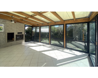 Angrenzend an das Wohnzimmer befindet sich der Wintergarten, der mit seinem offenen Kamin besonders an kühlen Tagen eine angenehme Atmosphäre schafft. Von hier aus gelangen Sie direkt auf die Terrasse und in den weitläufigen Garten.