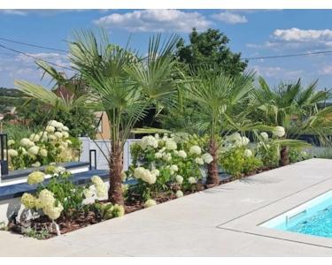 • Pool (10 × 4 m), 1,60 tief mit elektrischer Abdeckung, Sitzbank, Beleuchtung, automatischer Salzregeneration und pH-Dosierung – pure Entspannung.