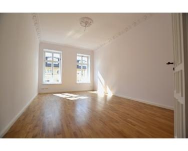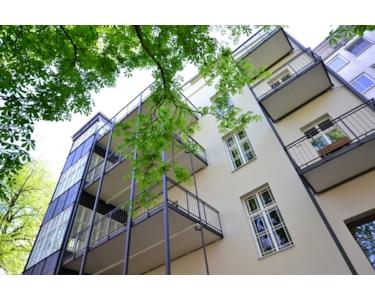 Im Regelgeschoss entstanden zwei Wohneinheiten, eine Wohnung mit drei Räumen und eine Wohnung mit vier Räumen, die besonders bei Paaren und Familien gefragt sind. Ergänzt wird das Angebot durch eine kompakte Wohnung im Souterrain sowie ein Penthouse im Dachgeschoss mit einer großen Terrasse und weitem Blick. Die historischen Bauelemente wurden behutsam restauriert und die Stuckdecken, soweit möglich, in ihren ursprünglichen Zustand zurückversetzt. Die Wohnungen mit vier Räumen verfügen zusätzlich über sehr große Balkone mit mehr als neunzehn Quadratmetern Nutzfläche.