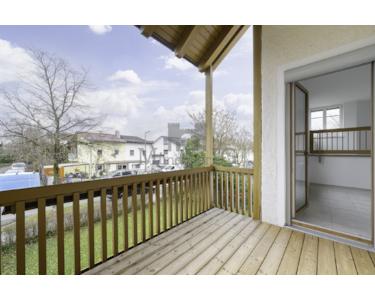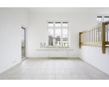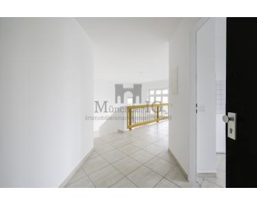 Über das freundliche und helle Treppenhaus erreichen Sie die angebotene Wohnung im zweiten Obergeschoß und es empfängt die moderne Diele mit Platz für Jacken, Taschen und Schuhe. Seitlich geht gleich die Küche ab. Sie bietet Platz für eine Küchenzeile und einen Frühstücksbereich oder alternativ zwei sich gegenüberliegende Zeilen mit Ober- und Unterschränken und aus dem Fenster haben Sie einen schönen Blick ins Grüne. Highlight dieser Wohnung ist der außergewöhnlich geschnittene Wohnbereich, denn dieser teilt sich in zwei Bereiche die über eine Treppe miteinander verbunden sind. Auf der Galerieebene können ein Esstisch und ein Homeoffice eingerichtet werden. Das Eckfenster sorgt für viel Tageslicht. Von der Galerie kann der Blick durch den Raum schweifen und es entsteht ein Loft-Feeling, denn im davor liegenden Wohnbereich haben Sie ca. 3,20m Deckenhöhe. Von hier gelangen Sie auf wettergeschützten Balkon, wo sie am Nachmittag die Sonnenstrahlen verwöhnen. Die Holzdielen sorgen für einen natürlichen Look und Sie haben einen schönen Blick auf die Umgebung.