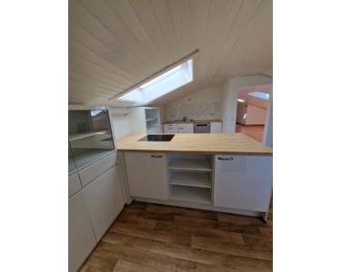 Duschbad, Einbauküche, Laminat, Fliesen