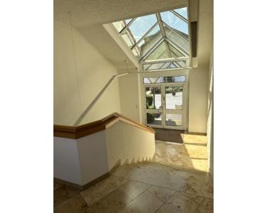 Im Haupthaus gibt es insgesamt 13 gut geschnittene Büroräume und auf jeder Etage sanitäre Anlagen. Die Konferenzräume bestechen durch die großen Fensterfronten, eine Unterteilung in kleinere Räume wäre ebenso denkbar. Der Übergang zum Anbau ist mit einer Glasüberdachung gestaltet, sodass der Flur sehr hell, freundlich und großzügig erscheint. Das Gebäude kann als Büros genutzt werden, eignet sich jedoch auch für eine andere gewerbliche Nutzung. Die Flächen sind ab 220m² teilbar. Es sind 3 Küchen vorhanden.