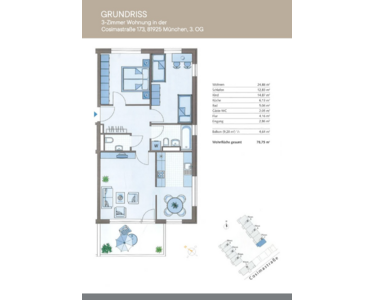 Die gepflegte Wohnung bietet auf rund 78,75 qm eine durchdachte Raumaufteilung: ein großzügiges Wohnzimmer, eine separate Küche, ein Elternschlafzimmer, ein Kinderzimmer sowie ein Bad mit WC und zusätzlich ein Gäste-WC. Der sonnige Balkon erweitert den Wohnbereich ins Freie. Zur Wohnung gehört ein Kellerraum. Die Wohnung ist derzeit leer und kann sofort bezogen werden. Sie eignet sich ideal für Familien oder Paare, die eine ruhige und zugleich zentrale Lage schätzen.