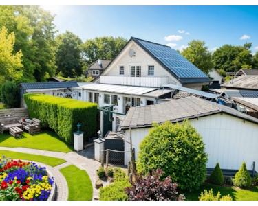 Nachhaltigkeit und Zukunftsorientierung kommen nicht zu kurz: Eine große Photovoltaikanlage unterstützt die Energieversorgung und senkt spürbar die Nebenkosten – ein Gewinn für Umwelt und Geldbeutel.