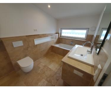 Echtholz Eiche Parkett, Naturstein Travertin, Badewanne , große Duschen, LED Beleuchtung, Sound System, Einbauküche, Div Einbaumöbel, Glasfaser