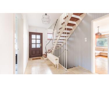 Sie betreten das Haus über den einladenden Dielenbereich, wo sich das hell geflieste Gäste-Duschbad mit Fenster befindet. Von hier gelangen Sie in den Lebensmittelpunkt des Hauses: der großzügig gestalteten Wohn- und Essbereich, der neben großen Fensterfronten über einen gemütlichen Kaminofen - für ein angenehmes Wohlfühlklima - verfügt.