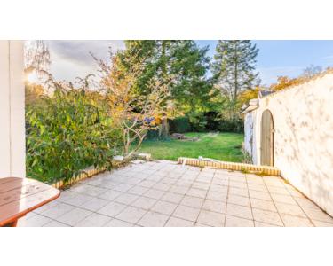Die teilweise überdachte West-Terrasse mit Blick in den nahezu uneinsehbaren Garten, der im hinteren Bereich an eine unbebaubare Grünfläche/ Park grenzt, lädt zu gemütlichen und langen Stunden nach Feierabend im Freien ein.