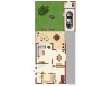 Direkt neben dem Haus können Sie in der Einzelgarage bequem Ihr Auto abstellen, während ein festgemauerter Anbau der Garage viel Platz für Fahrräder, Gartengeräte und -möbel etc. bietet.