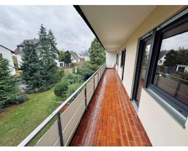 Balkon: ca. 20m², überdacht, Süd-West-Lage, Blick in den Garten und alten Baumbestand.