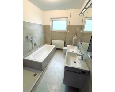 3-Familienhauses. Neue Eichen-Parkettböden, Travertin im Flur, 3-fach verglaste Fenster inklusiv neuer Wohnungs-Eingangstür, neue, moderne Bäder mit hellen, großformatigen italienischen Fliesen und hochwertigen Objekten, einen Garten zur Mitnutzung und eine Garage mit elektrischem Torantrieb und Stellplatz davor komplettieren diese Immobilie mit einer schönen 4-Zimmeraufteilung und gutem Grundriss.