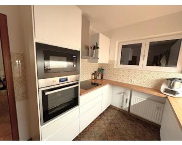 Küche: hier ist eine 1 Jahr junge EBK bereits vorhanden, die vom jetzigen Mieter gegen eine Abstandszahlung von EUR 7.500,00 VHB incl. Garantie übernommen werden kann. Die Küche selbst ist ausgestattet mit einem schönen dunklen Fliesenboden und Fliesenspiegel hellbeige, grau (Floral Retro).