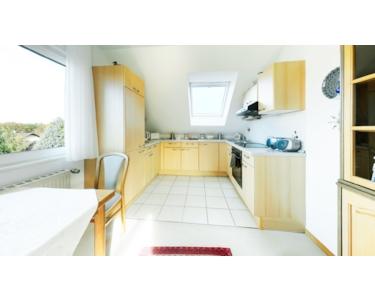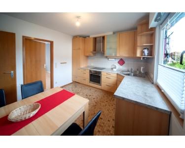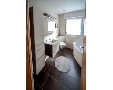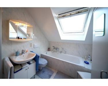 Das modernisierte Bad (2010) mit Eckbadewanne und Dusche, eine gepflegte Einbauküche (VHB) und aus dem Wohnzimmer, der direkte Zugang zur Terrasse mit Markise sorgen für hohen Wohnkomfort.
