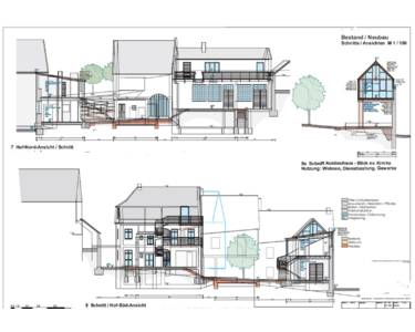 Die Gebäude wurden als Bäckerei und Metzgerei genutzt und sind zu wohnwirtschaftlicher oder betrieblicher Nutzung wiederherrichtbar. Denkbar wären bei derzeitiger Bausubstanz bis zu 8 Wohnungen (darunter Atelier- oder Loft-Wohnungen), Büros oder Kleingewerbe/Handwerk. Zusätzlich gibt es einen kleinen ruhig / sonnig gelegenen Nutzgarten.