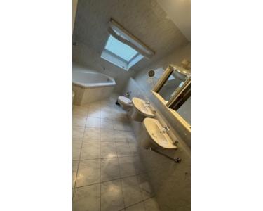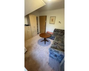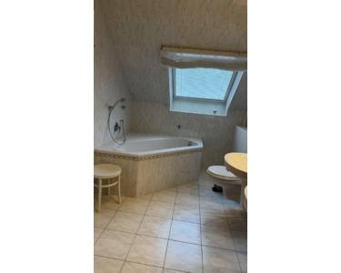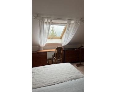 Ausgebauter Spitzboden mit Dachfenster mit Jalousie und Heizkörper