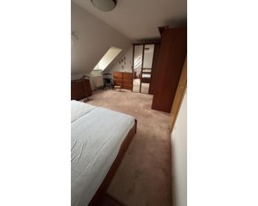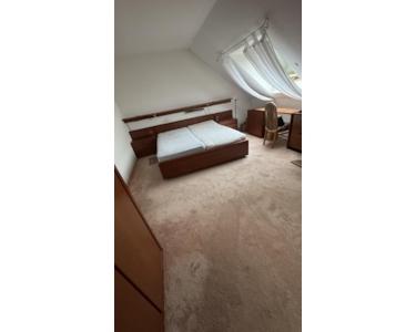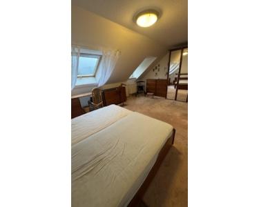 großes Schlafzimmer mit Teppichboden und viel Stellfläche – ideal als Rückzugsort, aktuell als Schlafzimmer genutzt