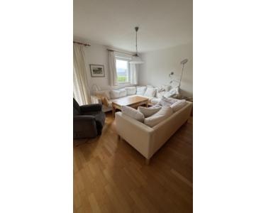 helles großzügiges Wohnzimmer mit Kamin und Südbalkon