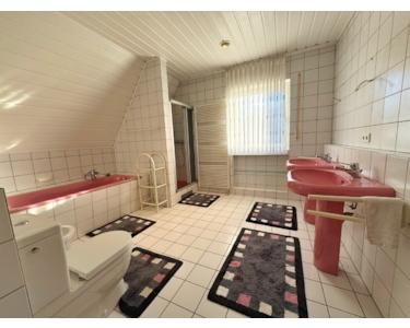 Die Immobilie verfügt somit insgesamt über sieben Zimmer, darunter vier Schlafzimmer und drei Badezimmer, was es ideal für Familien oder als Mehrgenerationenhaus macht. Der liebevoll gestaltete Garten mit direktem Zugang zur Ems, die Terrasse und die Loggia bieten vielfältige Möglichkeiten zum Entspannen und Genießen der umliegenden Natur. Das Haus ist voll unterkellert und bietet eine Garage für zusätzlichen Stauraum. Insgesamt wurden in den letzten 15 Jahren bereits energetische Maßnahmen getroffen, u.a. Dämmung des Daches, Erneuerung der Heizung und Erneuerung vieler Fenster.