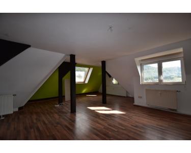 Mehrfamilienhaus in Frankenblick, Dachgeschoss, Flur, Bad mit Wanne, WC und Handwaschbecken, Küche, Kinderzimmer, Wohnzimmer, Schlafzimmer