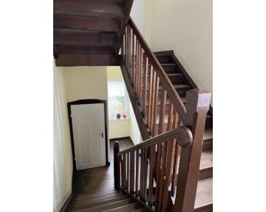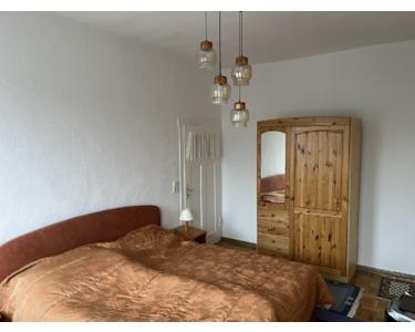 - Obergeschoss, Wohneinheit 2: Echtholzparkett in Kinderzimmer, Wohnzimmer und Schlafzimmer, textiler Belag in Küche, Fliesen im Bad, Gastherme (Baujahr 2024). Ofen bzw. Anschluss für Kamin in Küche. Moderne Schallschutzfenster mit Rolladen (Handkurbel).