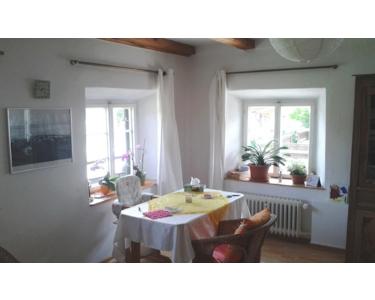 - Sie befindet sich im 1. Obergeschoss eines ehemaligen, umgebauten Bauernhauses.