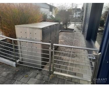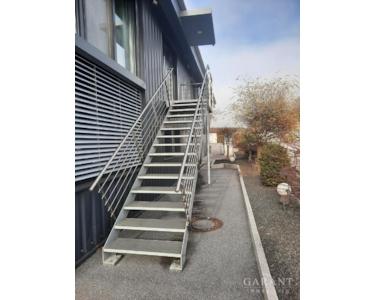 - Edelstahltreppenaufgang mit überdachtem Eingangsbereich